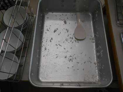 4年生は給食を残さずに食べていますと栄養士が教えてくれました。早速、様子を見に行ったところ、食器も丁寧に片付けていました。