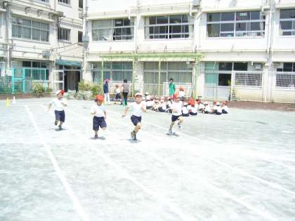 5月の運動会に向けて、はじめてかけっこをしました。何度か練習するうちにみんな上手に走れるようになりました。本番が楽しみです。