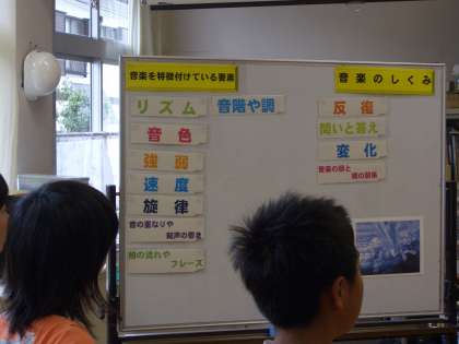 5年生の5時間目は、「音楽科」です。音楽専科の先生と担任の先生とのTT授業です。