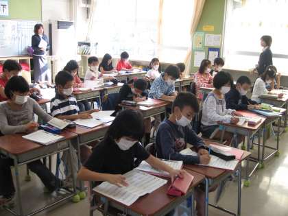 3年生は、「歌声をききあって歌おう」“ハッピー・メロディー”3年1組の教室で、授業を行いました。