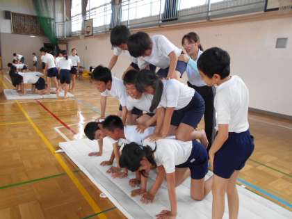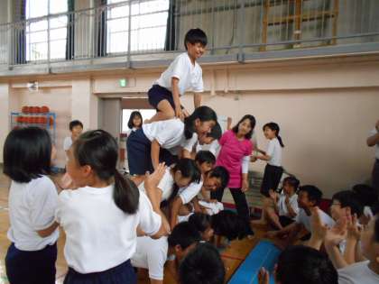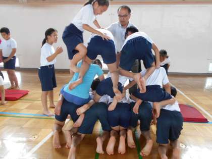 運動会の組体操は、いつでも感動を与えてくれます。そのときを目指して、今、猛練習中です。