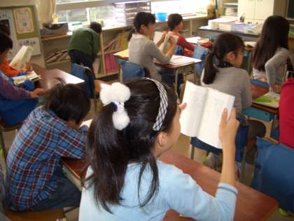 4年生は、“朝読書”自分で選んだ本を真剣に読んでいます。