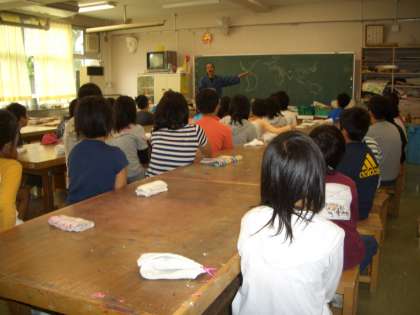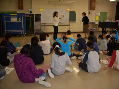 今日は、“紙すき”の先生をゲストティチャ—に迎えて、紙すきをします。人類が紙を使いだした頃、どの国で使われたかなどの歴史的なこと、地理的なことなども学習をしていました。そのあと、紙すきの工程をいくつかの班に分けて、作業がスムーズにできるような工夫をしてありました。