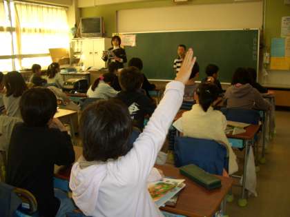 3年生の教室では、「あさの会での健康観察」担任の先生がひとりひとりの子どもの名前を呼び、子どもの顔をしっかり見て、“健康確認”をしていました。全員出席で、みんなげんきでした。