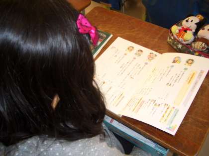 4年生は、「国語科」“教科書の下巻”にはいり、下巻では、どのような学習をしていくのか・・・・オリエンテーションです。新しい内容は、新しい漢字は、・・・など先生の話を聞いていました。