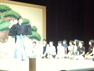 世田谷区は毎年、6年生を対象とした古典芸能鑑賞教室を開いています。九品仏小学校の6年生は玉川区民会館にて狂言を鑑賞しました。また、上演とともに各校の6年生の代表が舞台に上がってのワークショップを行われました。