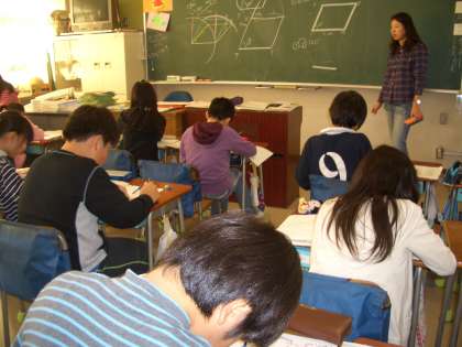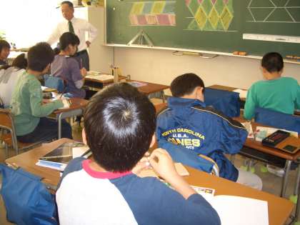 4年生は、「算数科」少人数指導です。担任と少人数の先生のクラスに分かれての指導です。四角形の学習をしていました。