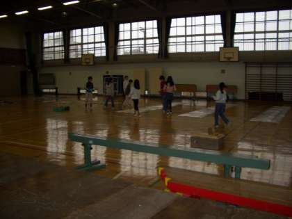 4年生は、図画工作です。共同作品を作るために、広い体育館で作成します。専科の先生の説明を聞いてから、作業に入ります。