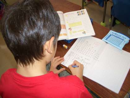 2年生の教室では、「算数科」“かけざん九九”の学習をしていました。画面の男子は、6のだんの九九の問題つくりに挑戦していました。