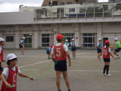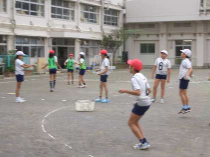 6年生は、曇天の下・・・「体育科」“サッカー”をやる前に、縄跳びの練習をしていました。