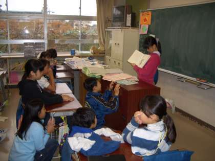 4年生は、子どもによる「読み聞かせ」をしていました。担当の子どもは、上手に工夫して読んでいました。