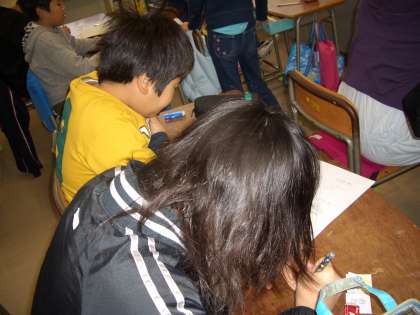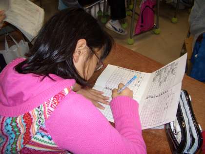 5年生は、「朝 自習」プリントの問題を真剣に解いていました。