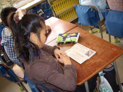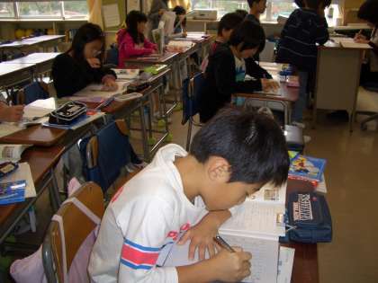 3年生の教室では、“算数科・少人数:大きな数”の力だめしの問題に挑戦していました。ノートのとりかたも工夫されていました。