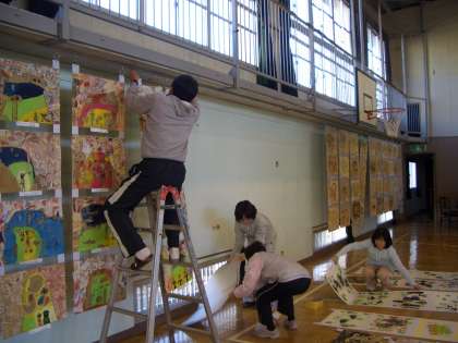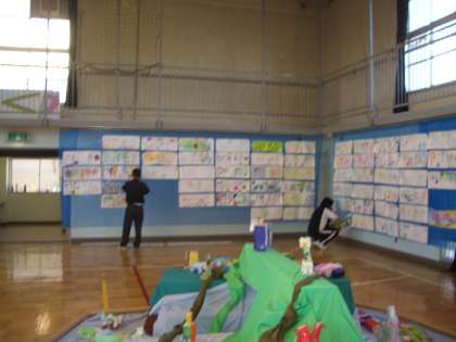 いよいよ明日から土曜日まで、展覧会です。最期の準備を放課後、全教職員が体育館に集まり、準備をしました。