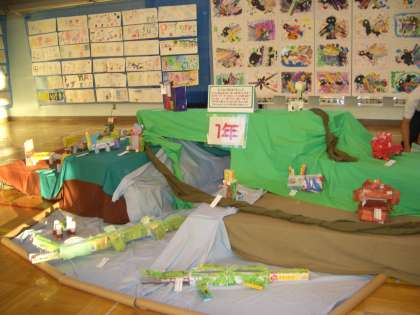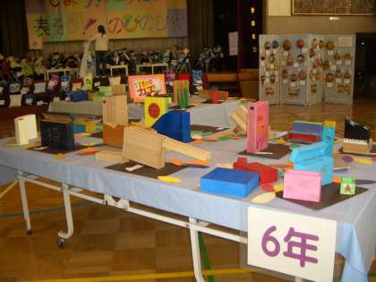 展覧会場です。来年度、本校に入学予定の方々は、ぜひ、ご覧ください。1年・・2年・・3年・・4年・・5年・・6年・・と、確実に学年ごとに成長している姿が、作品を通して、ご覧いただけると思います。