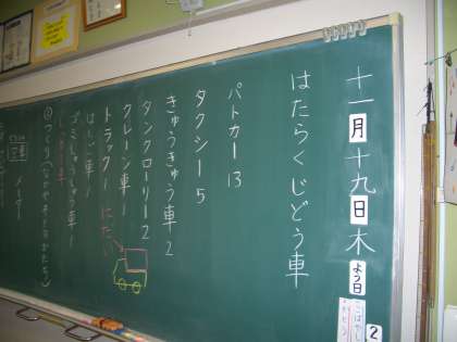1年生は、“生活科:はたらくじどうしゃ”の学習を学習カードにまとめていました。