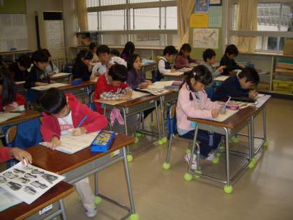 学校公開週間、展覧会、就学時健康診断の日です。どの学年も落ち着いた授業を行っていました。