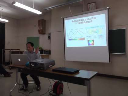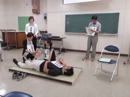 第一部は、今年度の定期健康診断・体力テストの結果報告を行い、学校医の先生からお話をいただきました。第二部は、子ども達の体と心〜私たち大人にできる早期発見・早期対応〜をテーマに、1)「色覚異常の現状と学校・家庭での対応(学校医(眼科)望月先生)2)「インターネットと薬物(学校薬剤師 高橋先生)」3)「食物アレルギー対応〜緊急時の対応(教職員によるシミュレーション)」4)「デング熱について(吉本先生)」と盛りだくさんの内容でした。