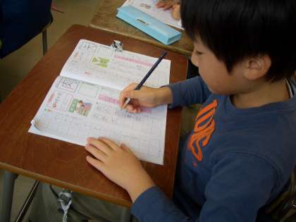 2年生は、国語科“新しい漢字”を練習帳に書いていました。書き順に気をつけてていねいに書いていました。