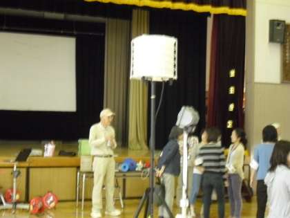 緊急時に九品仏小が避難所になった時を想定し、避難所利用の段取りの説明だけでなく、仮設トイレの設置、発電機による発電、アルファ米の炊き出しなどの実演も行われました。その様子の一部をご紹介します。