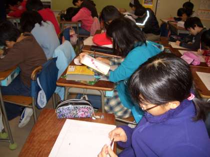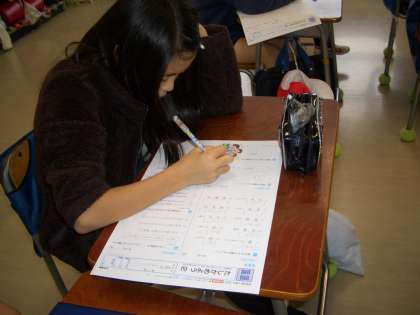 4年生の教室では、国語のまとめのテストしていました。学習してきたことを思い出しながら、問題文をしっかり読み取って取り組んでいました。