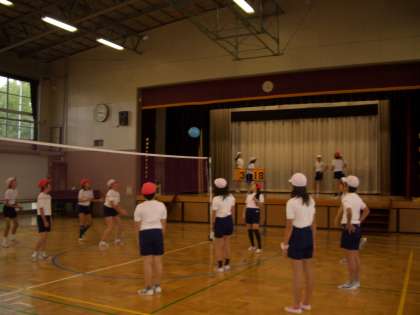 6年生は、体育館で“体育科:ソフトバレーボール”を行っていました。やわらかいボールでも打つタイミングや受けるタイミング、アタックするタイミングも難しそうです。