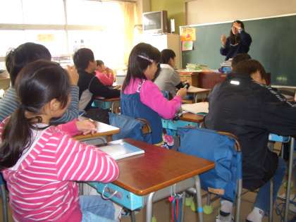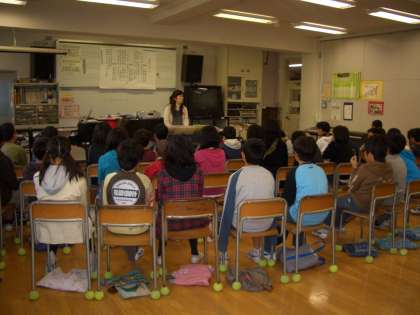 4年生の教室では、“朝の会のようす”担任の先生の経験したことを子どもたちに話して、子どもと先生の会話のキャッチボールをしていました。