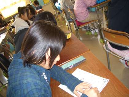 6年生の教室では、“漢字テスト”をしていました。難しい感じに日ごろの学習してきたことを発揮していました。