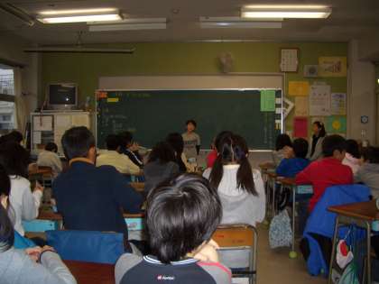 5年生の教室では、“朝の会:1分間スピーチ”女子は、ヒップホップダンスを習っていることを・・・がんがっていることを話しました。