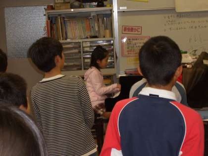 5年生は、“音楽科”“飛べ ペガサス”という曲を練習していました。ソプラノ、アルトに分かれて、伴奏も子どもが担当しての練習です。