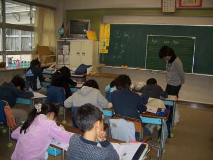 3年生の教室では、“国語科:ローマ字”の“kya kyu kyo”の書き方・・・考え方を説明してノートに練習していました。どの子どももよく聞いていて、理解が早かったです。