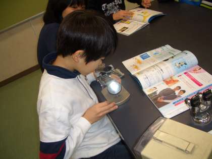 5年生は、“理科室:理科”の学習をしていました。“塩の結晶”を顕微鏡で見ていました。どの班もチームワークよく協力し合って・・・・結晶がきれいに見えていました。