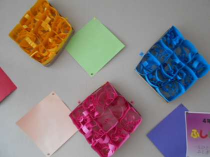 4年生は、共同作品「ふしぎボックス」を制作しました。一人一人のはこをつなげるとふしぎな世界ができました。