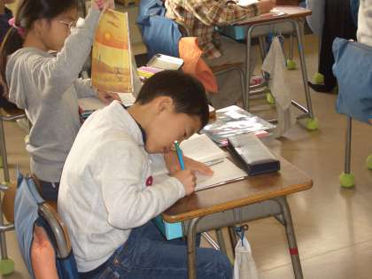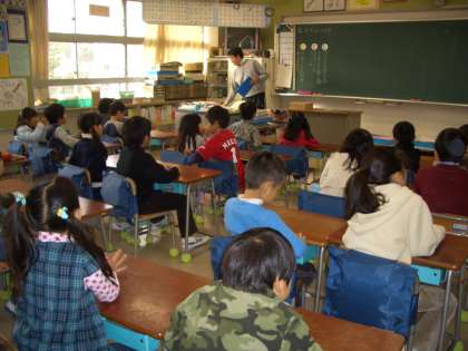1年生の教室では、“朝の会”で、土・日曜日の読書カードの確認を出席・健康観察を兼ねて行っていました。読んでいる子どもには、全員で温かい拍手をおくっていました。