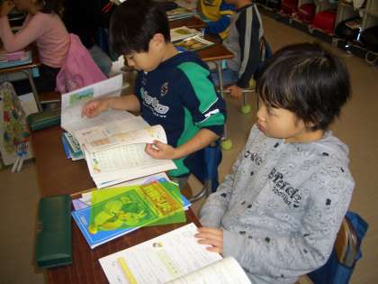3年生の教室では、1時間目の“算数科”の準備をしてどういう学習をするか・・確認していました。