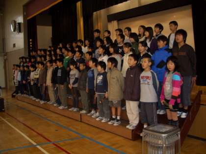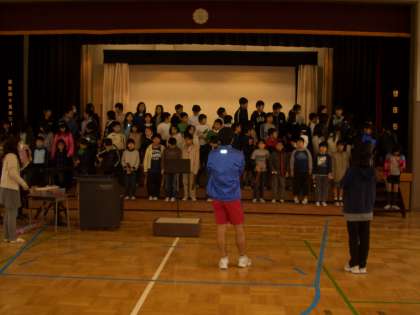 5・6年生は、“合同音楽授業”専科の先生と5,6年生の担任の先生とTTで体育館で合同練習をしていました。曲目は、“道”です。さすが、高学年の声量は素晴らしいです。地声にならずにおなかから声をだしていました。合同練習は、初めてでしたが、素晴らしい歌声で、“音楽学習発表会”が楽しみです。