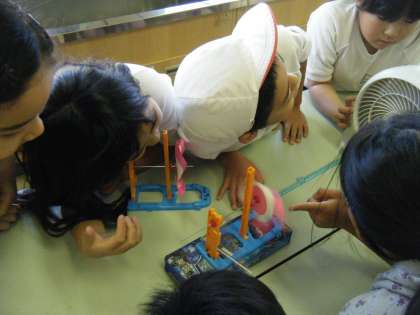 今日は「風を強くするとどのように風車が回るか」を実験して解決しました。見た目だけではなく、回る音や軸の手ごたえで比べました。