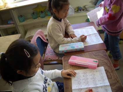 2年生の教室では、いつものように宿題のプリントの答え合わせを係りを中心に行っていました。係りの子どもも間違いのないように確認をしていました。答え合わせが終わったら、先生に提出です。