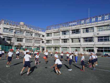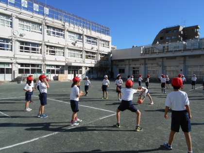 寒い風が吹く中でも、2年生は元気にボール運動に取り組んでいました。