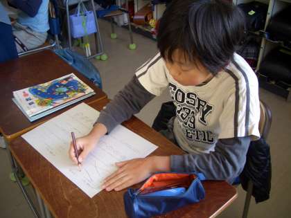 5年生の教室では、“国語科:テスト”をしていました。テスト用紙がくるとすぐに記名して、はじめていました。