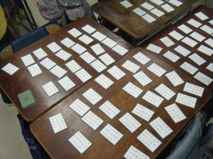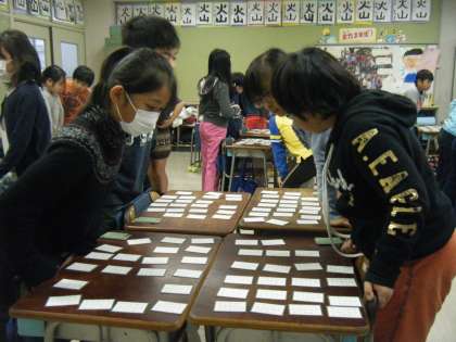 冬休みの宿題になっていましたが、覚えている人は上の句を聞いてとることができました。次回は、今回のとった枚数を基にグループを作り、入れ替え戦を行います。