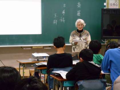講師をお迎えして東京大空襲の体験談をお聞きしました。戦火による被害と人々の避難の様子をお話ししていただき、平和を願う気持ちがより強まりました。