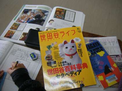 調べるために、世田谷のお祭りや行事にかかわる資料探しを子どもたちが行いました。