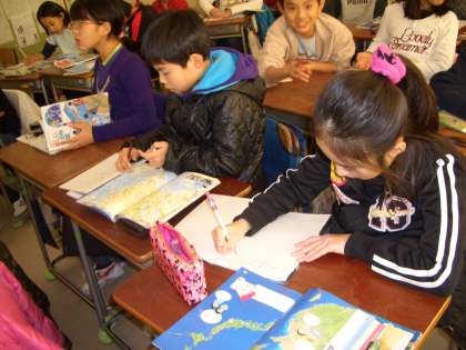 5年生の教室では、“社会科:地図の調べ方”いろいろな国々を調べていました。しらべたことをていねいにノートにまとめていました。