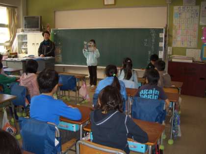 2年生の教室では、“朝の会:1分スピーチ”画面の女の子は、世田谷ボロ市にご両親と行ったことを話していました。たくさんのお店が出ていて驚いたようです。ボロ市は、毎年、12月15日、16日と1月15日、16日に代官屋敷一帯で行っています。