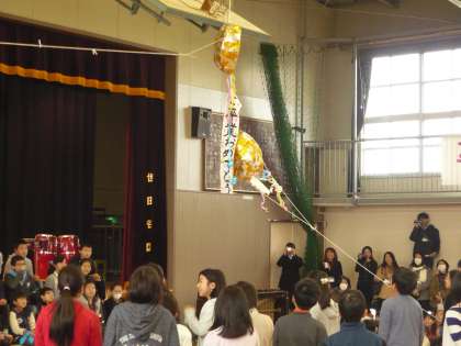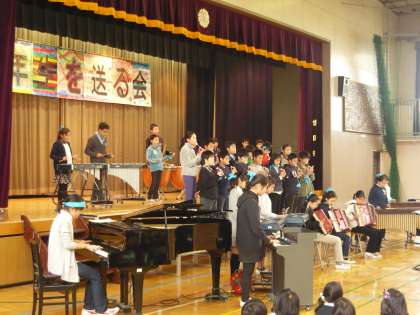 昨日のお別れ給食に引き続き、本日は6年生を送る会が行われました。1年生から5年生までは、呼びかけ、ダンス、合唱などで今までお世話になった6年生に精一杯の感謝を伝え、6年生は合唱、合奏でそれに応えていました。