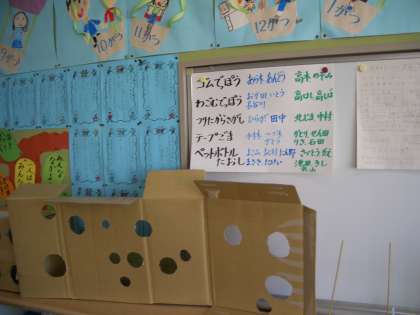 後ろの黒板には、22日(金)の子どもフェスティバルの準備の確認が書くれていました。