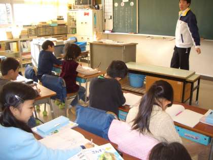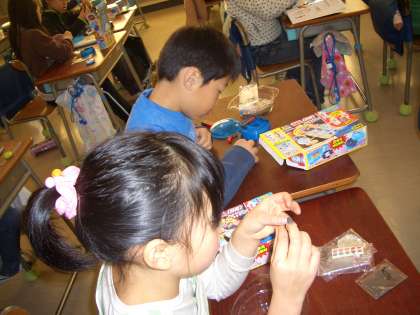 3年生の教室では、“理科:磁石”実験道具を使って、磁石につくもの、磁石のどこにつくかなどを一人一人が実験道具を操作しながら勉強していました。