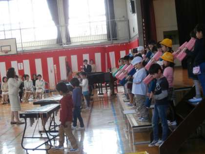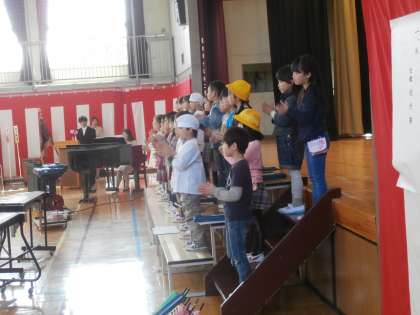 2年生は歌と演奏と呼びかけなどで1年生の入学をお祝いしました。びゅんびゅんごまを回したり、なわを跳んだり、給食や遠足の紹介をしたり楽しい九品仏小学校の1年間を元気いっぱい紹介できました。