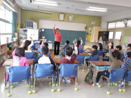 2年生は、クラス替えをして新しいお友だち、先生と新学期を迎えました。1組は「いろいろおしえるね」カードを使っての自己紹介、2組は昼休みに遊んだことを発表していました。2年生はすっかりお兄さん・お姉さんの顔になっていまた。